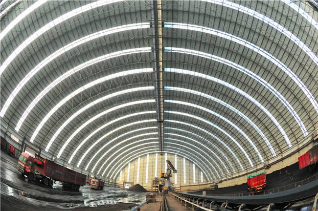 堆场料场封闭式主体结构为新型的钢宜宾网架结构,维修结构为宜宾钢结构宜宾不锈钢板和纤维增强塑料灯具,其外形以宜宾网架式和平板为主,连接柱宜宾施工自由,设置喷雾自动喷水系统,从而可以实现棚内所有物料的覆盖,减少物料在运输过程中的损耗,起到防尘的作用,减少工厂关闭后的二氧化硫排放量,50mg/m3颗粒排放量小于10mg/m3,非常适合低能耗。低闭库自动感应反应对库存轮胎进行清洁,确保轮胎不受道路污染;封闭的储存区可从源头控制粉尘污染,控制无序排放。